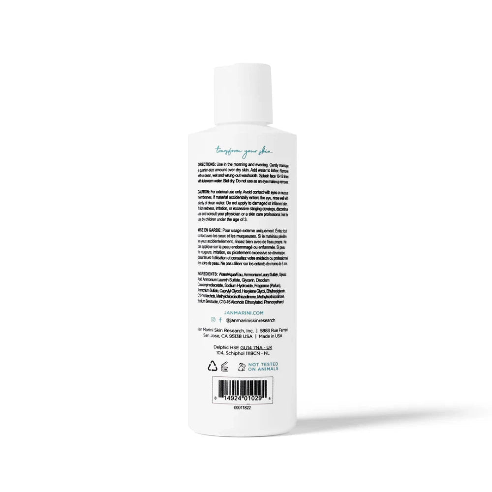 Jan Marini Bioglycolic Gel Limpiador Piel Grasa proporciona una limpieza folicular profunda para personas con piel extremadamente grasa - incluyendo grasa en las mejillas con necesidad frecuente de secado. Este gel limpiador facial a base de ácido glicólico hace espuma, elimina la grasa y deja la piel limpia y suave. El ácido glicólico proporciona una limpieza folicular profunda para eliminar las impurezas y las células muertas de la piel y prepara la piel para obtener mayores beneficios de los productos adicionales utilizados como parte de un programa de cuidado de la piel.